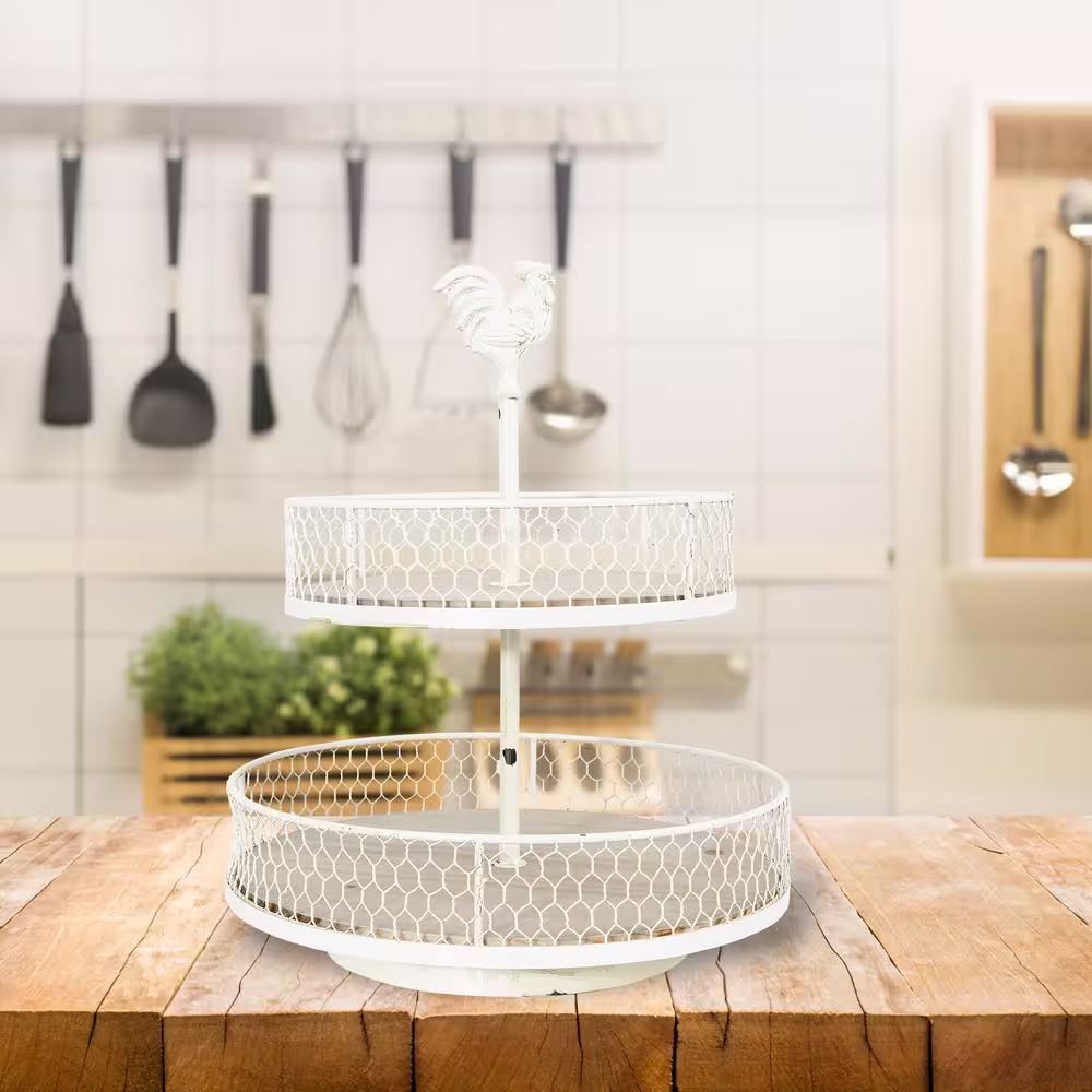 Storied Home Off-White Decorative 2-Tier Tray