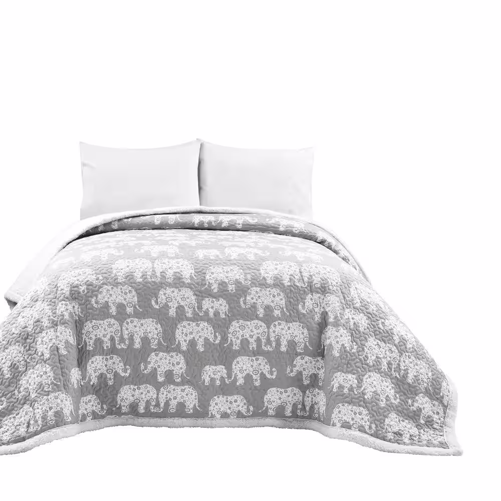 Lush Decor Elephant Parade Sherpa Blanket/Coverlet Soft Gray Single Full/Queen