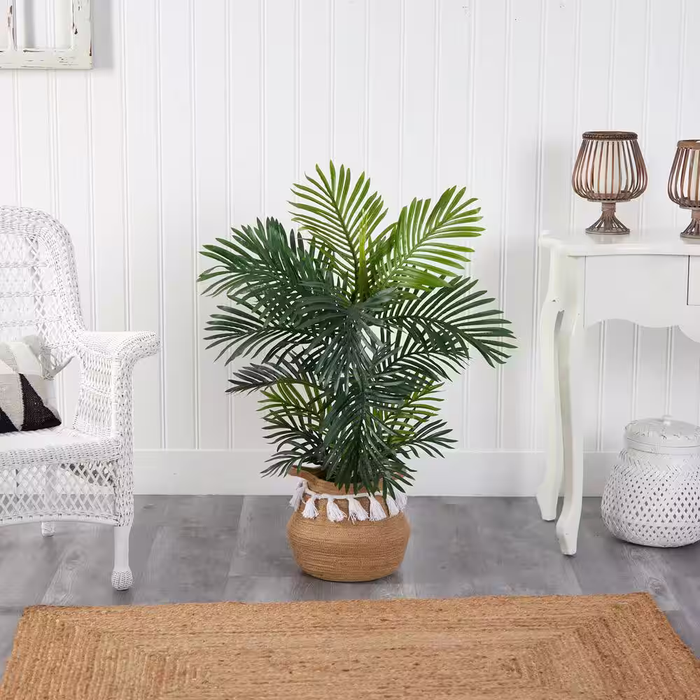 Nearly Natural 40 in. Green Areca Artificial Palm Tree in Handmade Natural Cotton Planter with Tassels UV Resistant (Indoor/Outdoor)