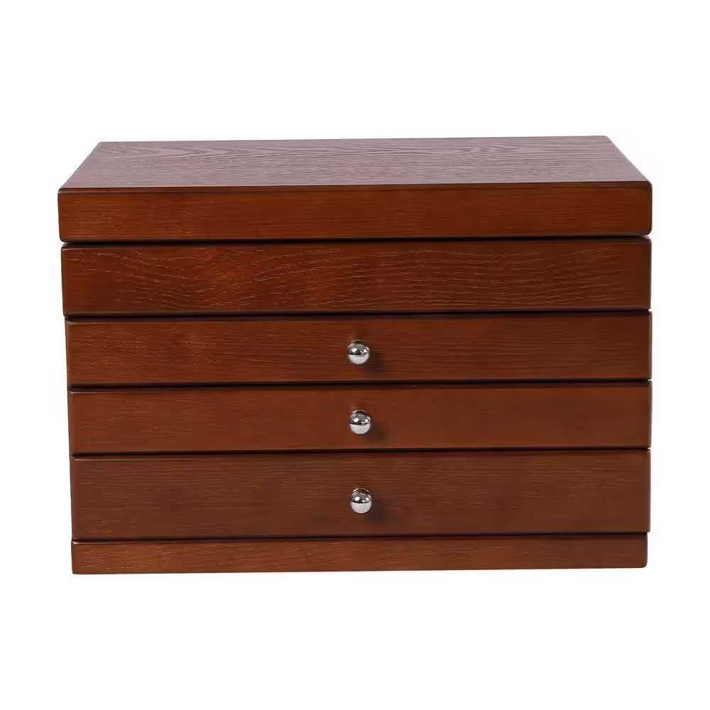 YIYIBYUS Large 4-Tier Original Wood Jewelry Box Velvet Lining Storage Organizer with Drawers and Mirror