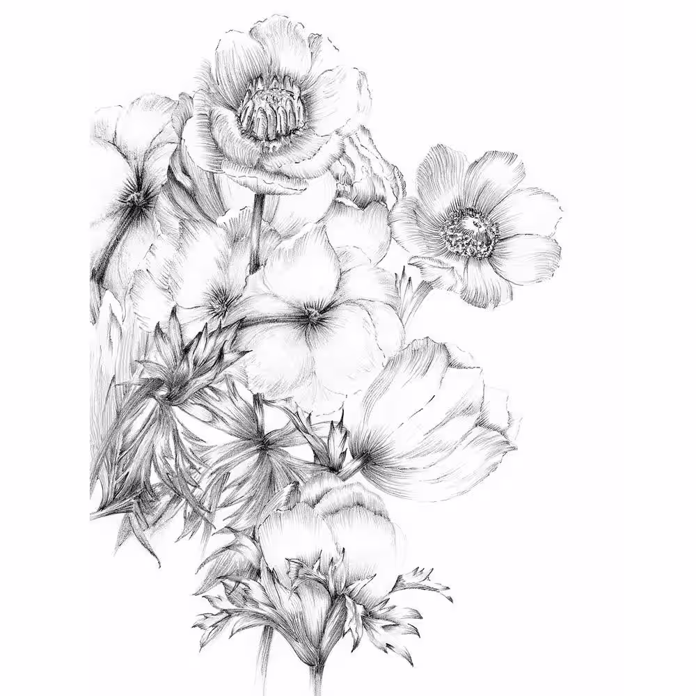 Komar 98 in. x 72 in. Black Embroidered Flowers Wall Mural