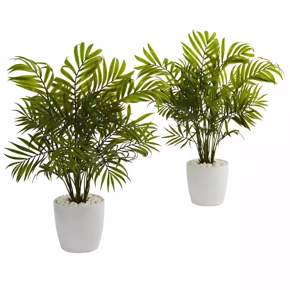 Nearly Natural Palms Artificial Plant in White Planter (Set of 2)