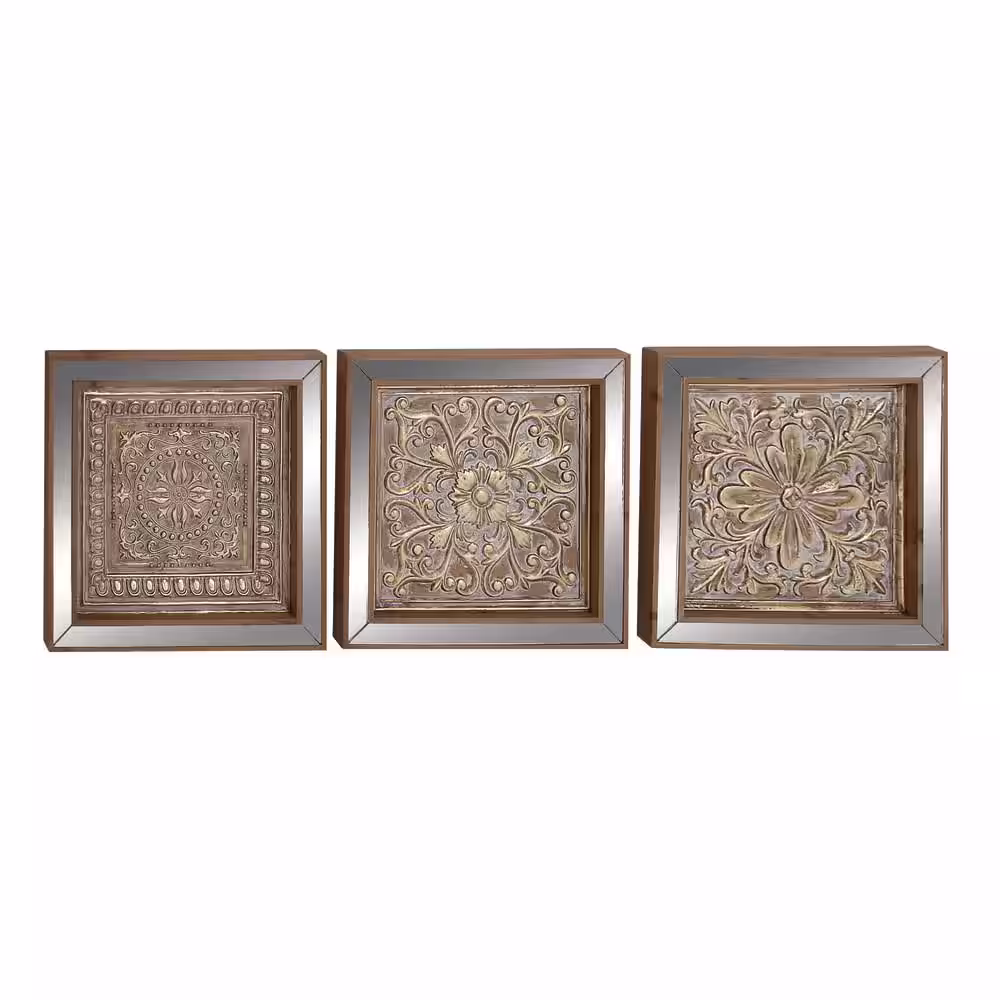 Litton Lane Metal Gold Embossed Floral Wall Decor with Mirror Panels (Set of 3)