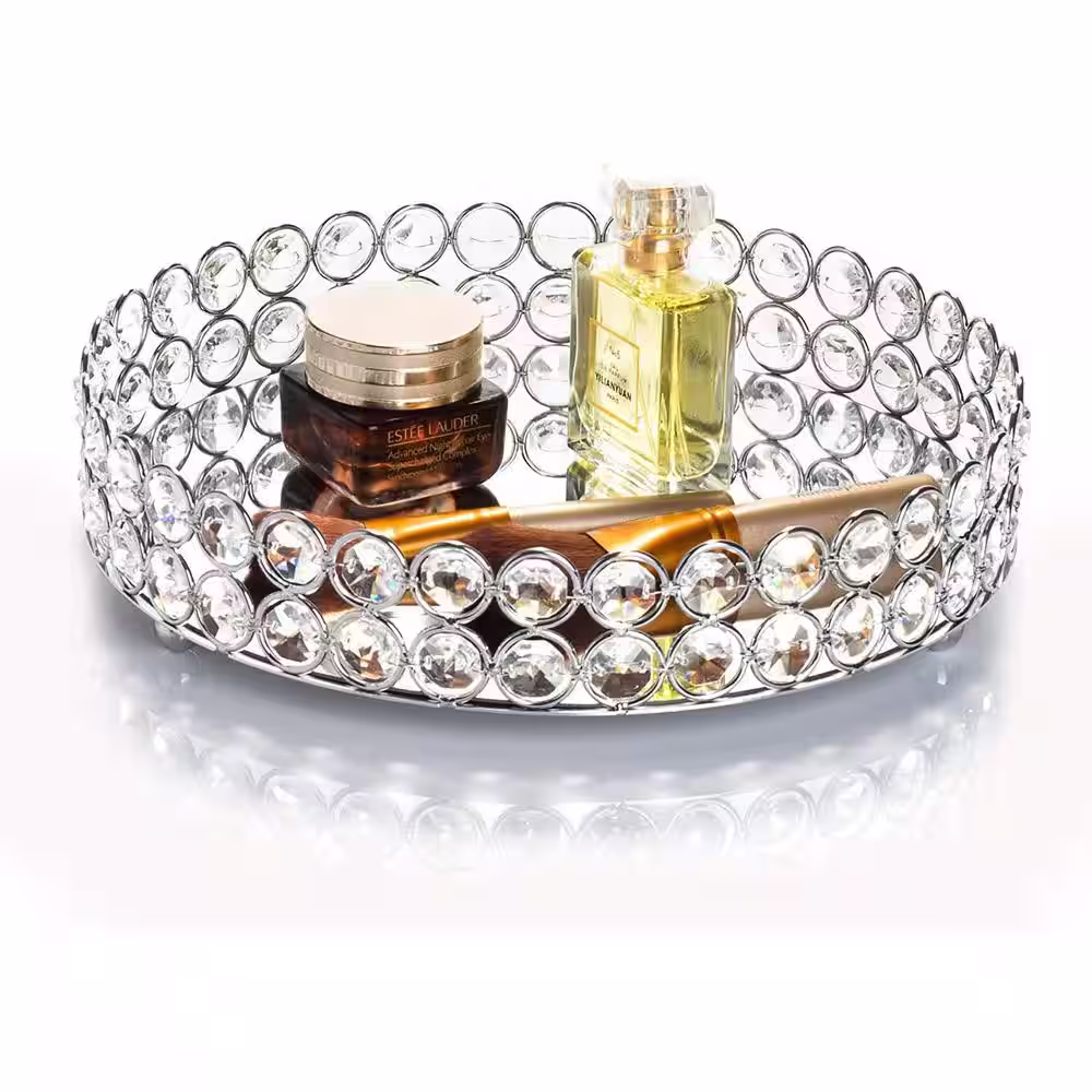 Cubilan 10.6 in. L x 9.5 in. W Silver Crystal Cosmetic Makeup Tray Mirrored Decorative Tray