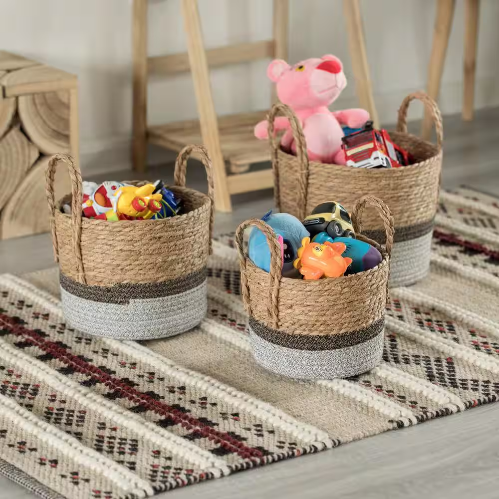 Vintiquewise Straw Decorative Round Beige Storage Basket with Woven Handles for the Playroom Bedroom and Living Room (Set of 3)