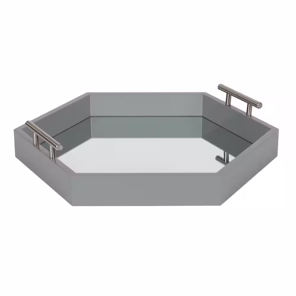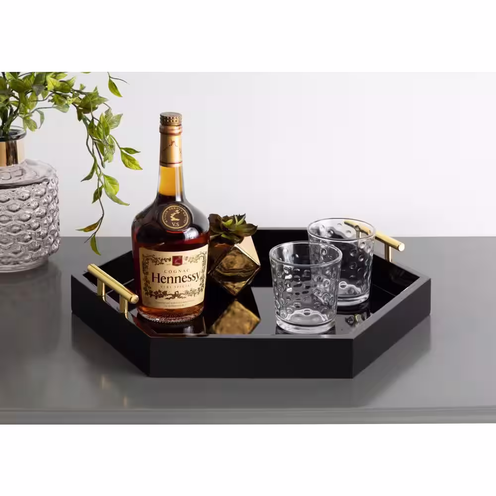 Kate and Laurel Lipton 18 in.x 18 in. Black/Gold Hexagon Decorative Tray