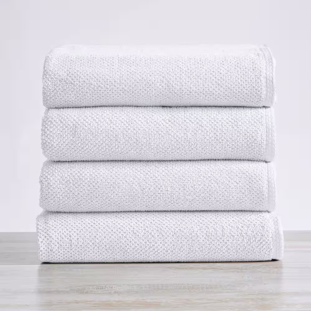 FRESHFOLDS White Solid 100% Cotton Textured Bath Towel (Set of 4)