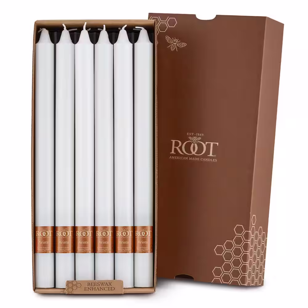 ROOT CANDLES Smooth Arista 12 in. White Unscented Taper Candle (Set of 12)