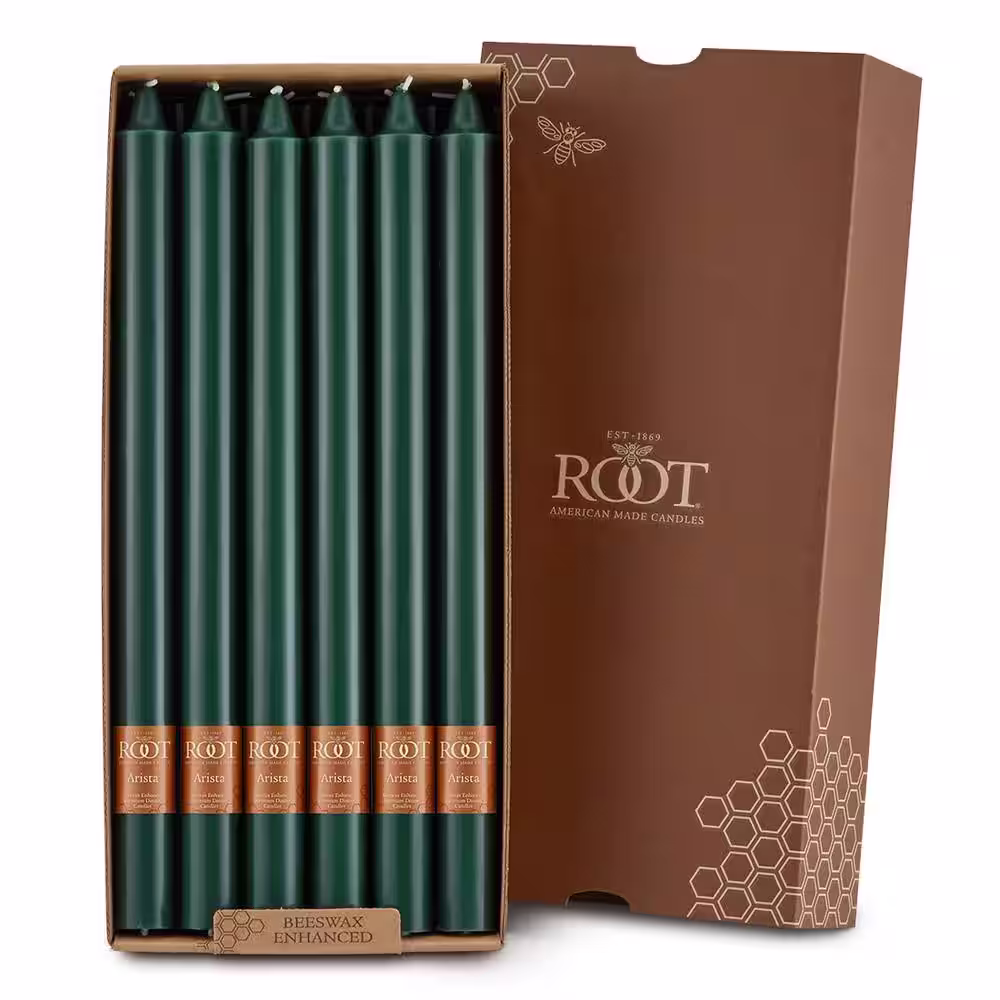 ROOT CANDLES Smooth Arista 12 in. Dark Green Unscented Taper Candle (Set of 12)