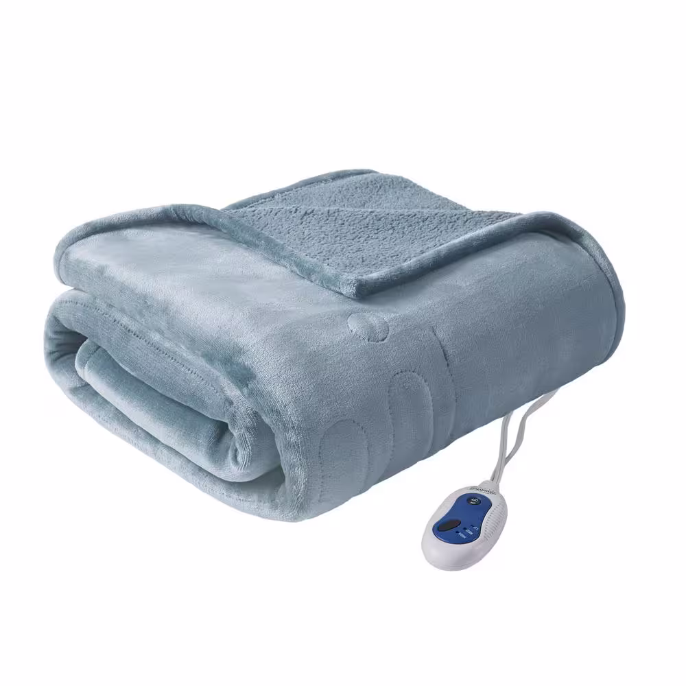 Beautyrest Heated Microlight to Berber Blue 60 in. x 70 in. Throw