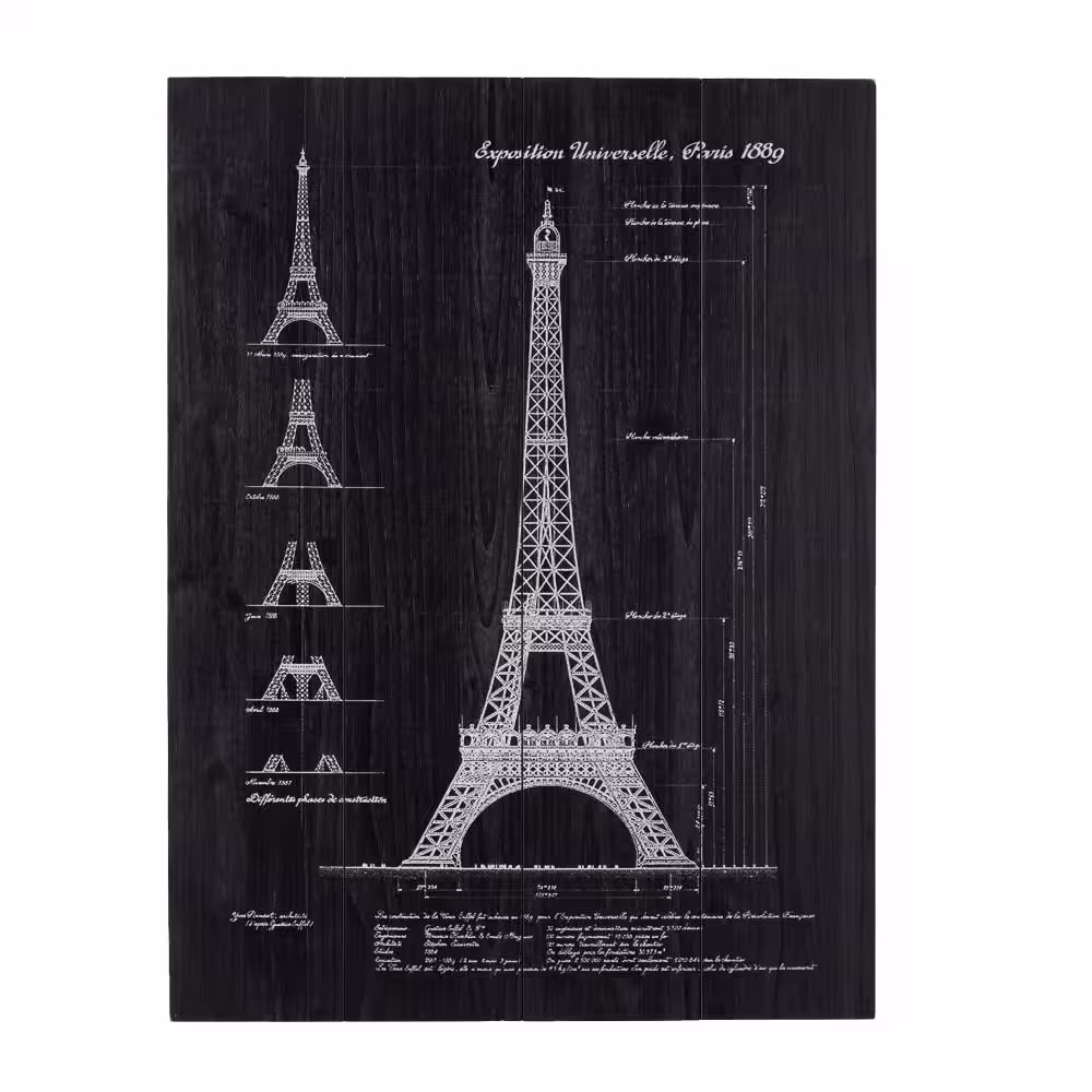 Litton Lane 32 in. x 24 in. Black Wood Coastal Eiffel Tower Wall Art