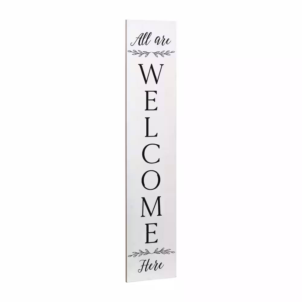 None All Are Welcome Here Vertical White Wood Wall Decorative Sign