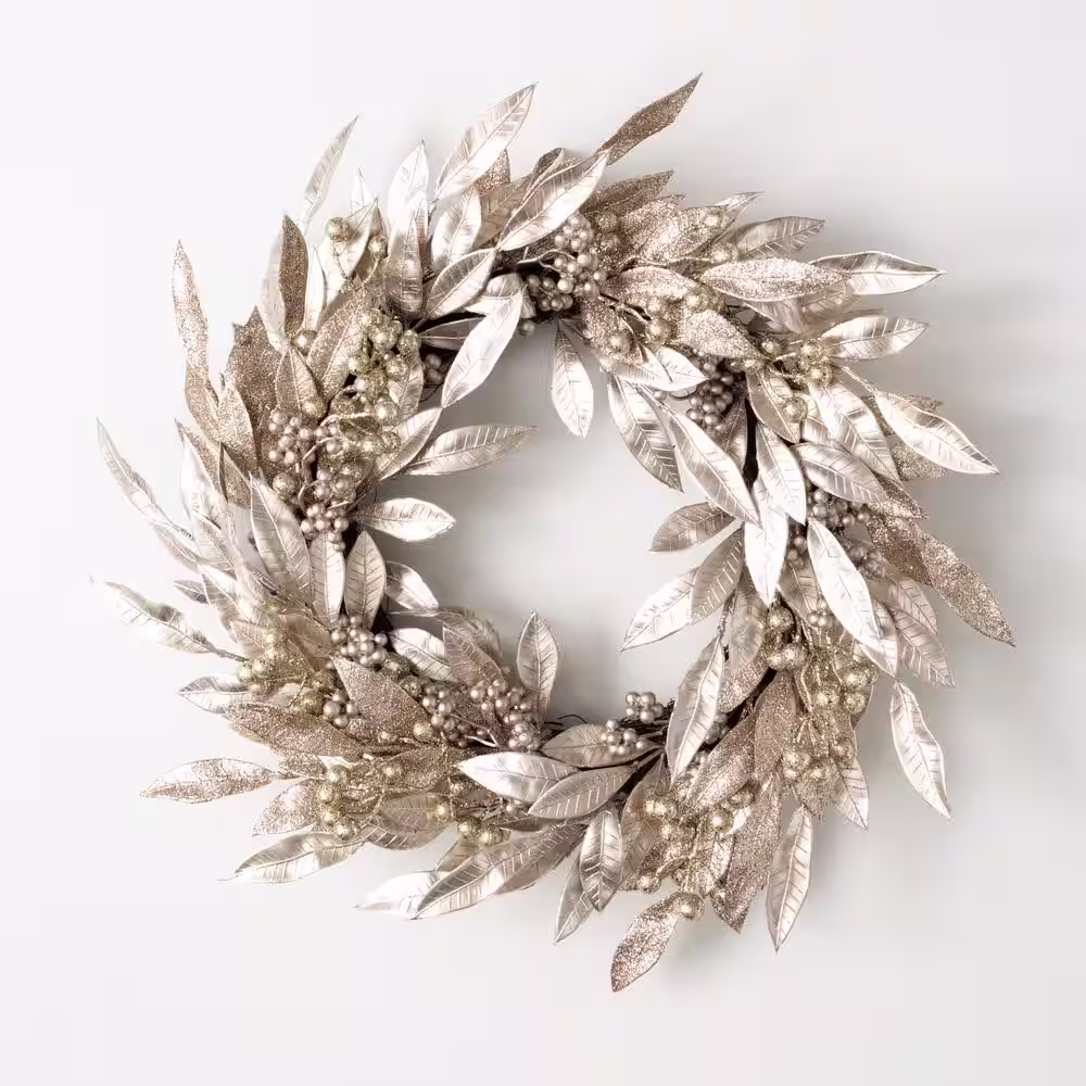SULLIVANS 24 in. Artificial Gold Leaf and Berry Wreath