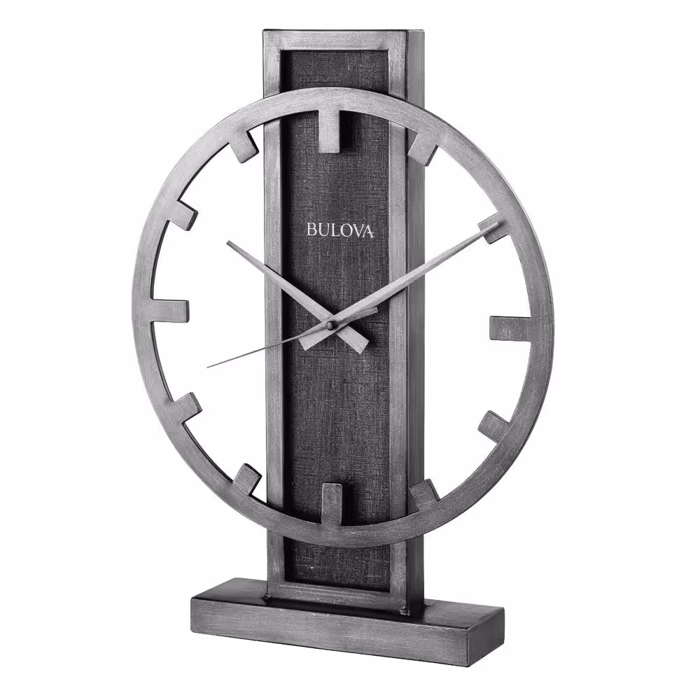 Bulova Contemporary Table Clock with Silver Tone Metal Case