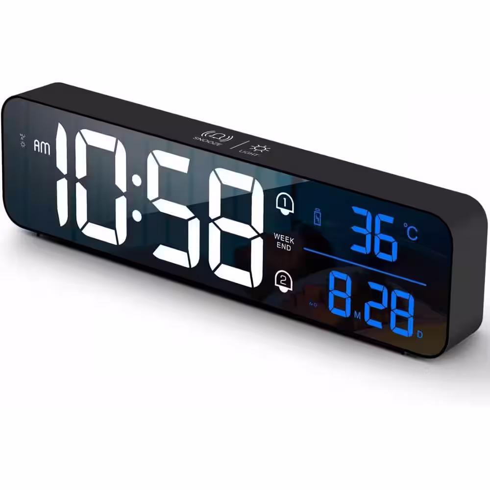 None Modern LED Large Display Rechargeable Wireless Digital Alarm Clock in Black