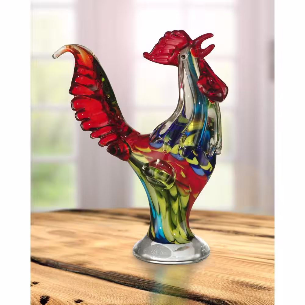 Dale Tiffany 11 in. Rooster Handcrafted Irregular Art Glass Figurine