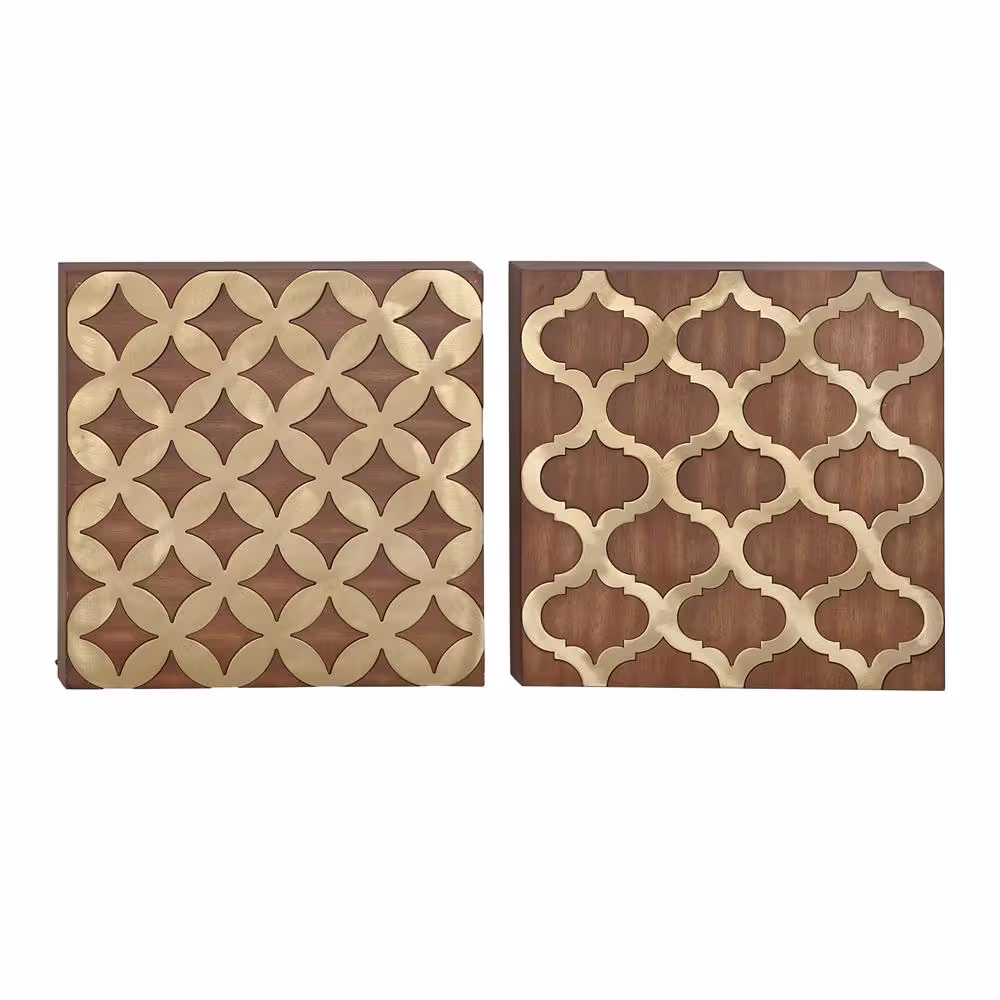 Litton Lane "Gold Trellis" Wooden Wall Art ((Set of 2))