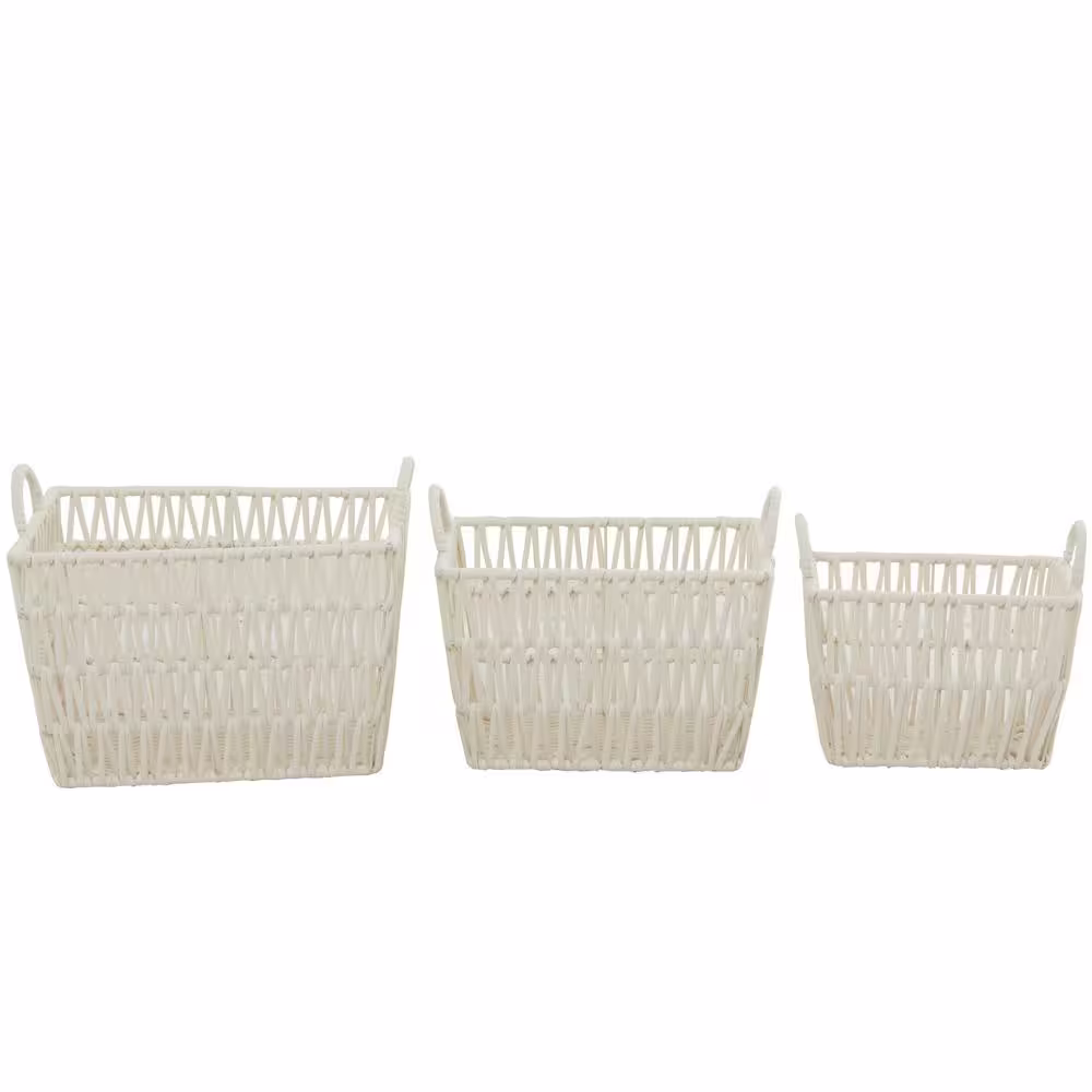 Litton Lane Cotton Handmade Storage Basket with Handles (Set of 3)