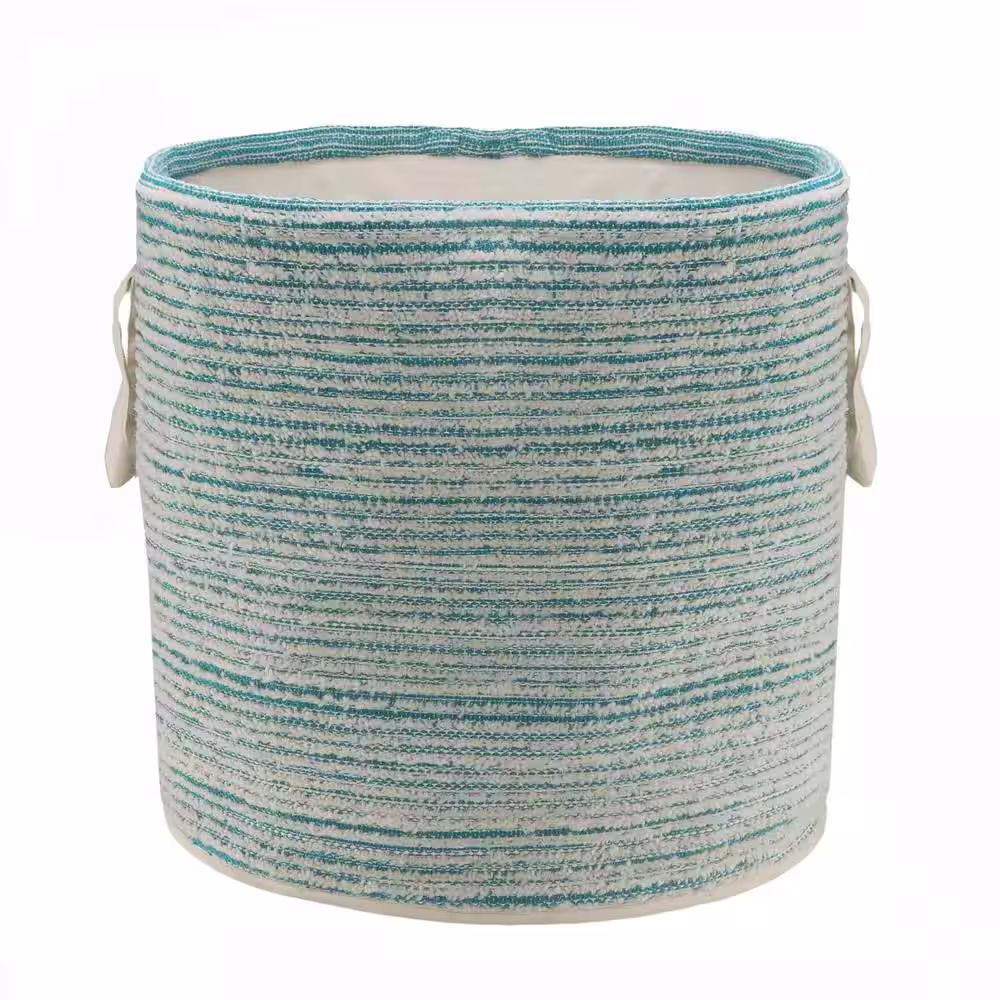 LR Home Amara Textured Cotton Aqua Blue / White Distressed Decorative Storage Basket