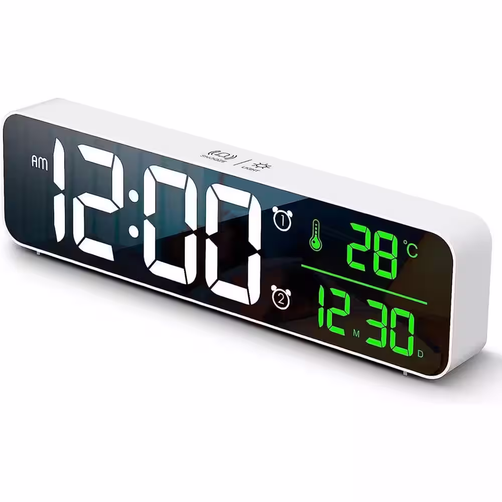None Modern LED Large Display Wired Digital Alarm Clock in White and Green