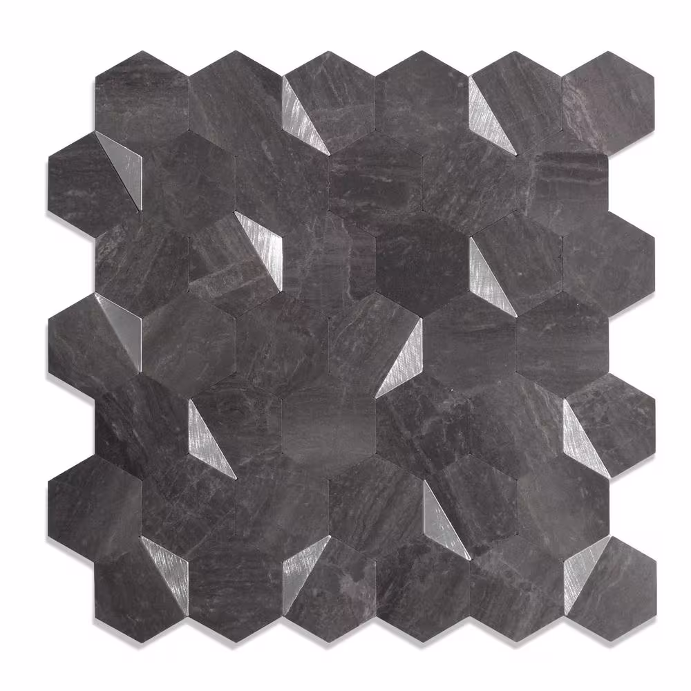 None Hexagon Charcoal Gray Mixed Metal 12 in. x 12 in. PVC Peel and Stick Backsplash Wall Tile (20 sq.ft./10-Sheets)