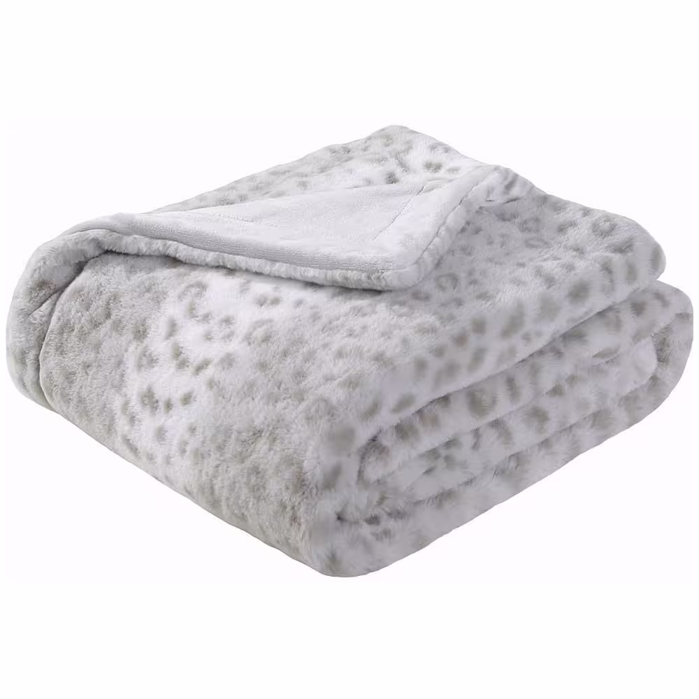 None Printed Gray Flannel Sherpa 50 in. x 60 in. Throw Bed Blanket