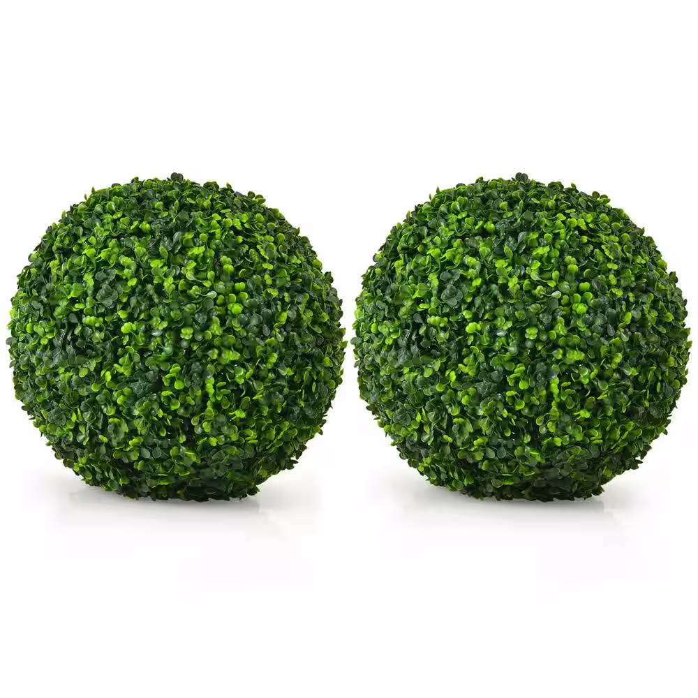 Costway 2-PCS 15.7 in. Green Artificial Boxwood Topiary Balls UV Protected Indoor Outdoor