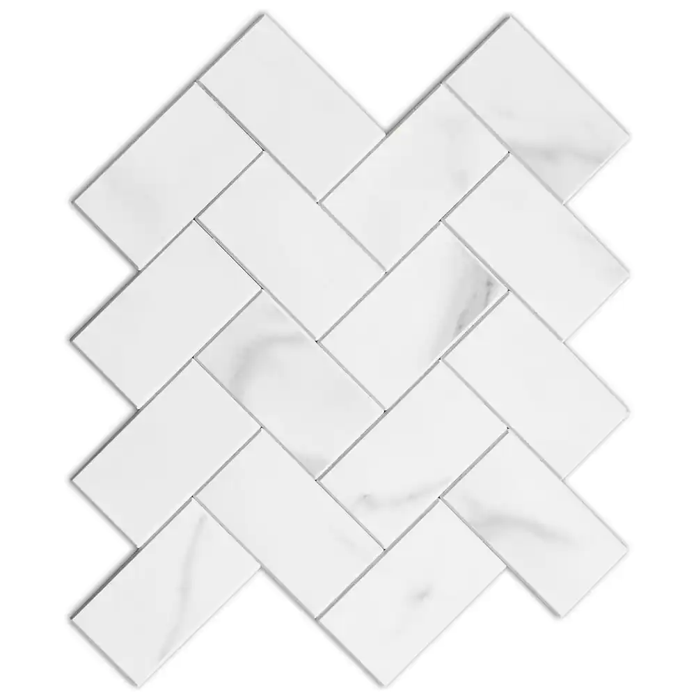 AVANT DECOR Shanghai Carrara Herringbone 9.5 in. x 10.7 in. 4 mm Stone Peel and Stick Backsplash Tile (5.62 sq. ft./8-Pack)