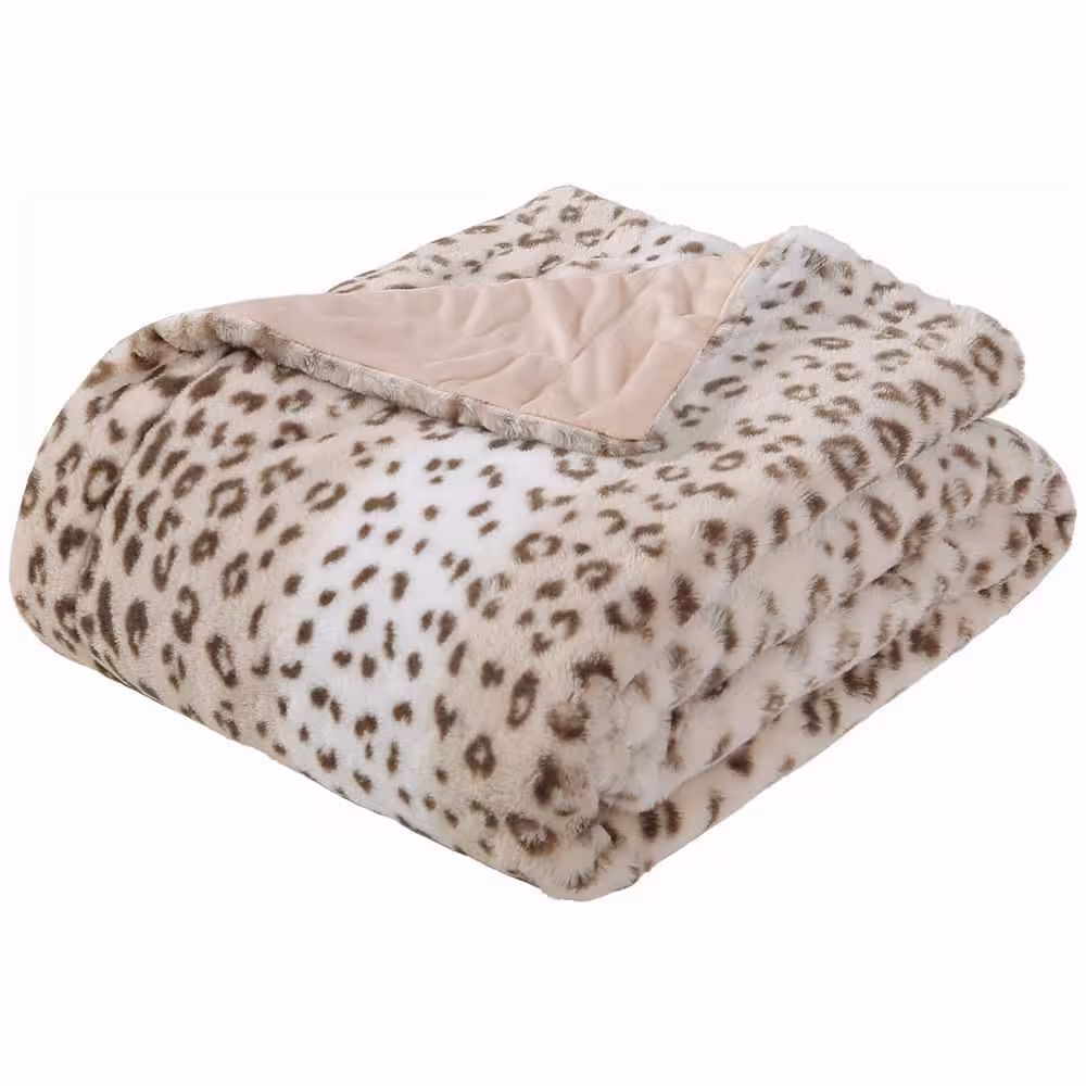 None Geometric Sand Flannel Sherpa 50 in. x 60 in. Throw Bed Blanket