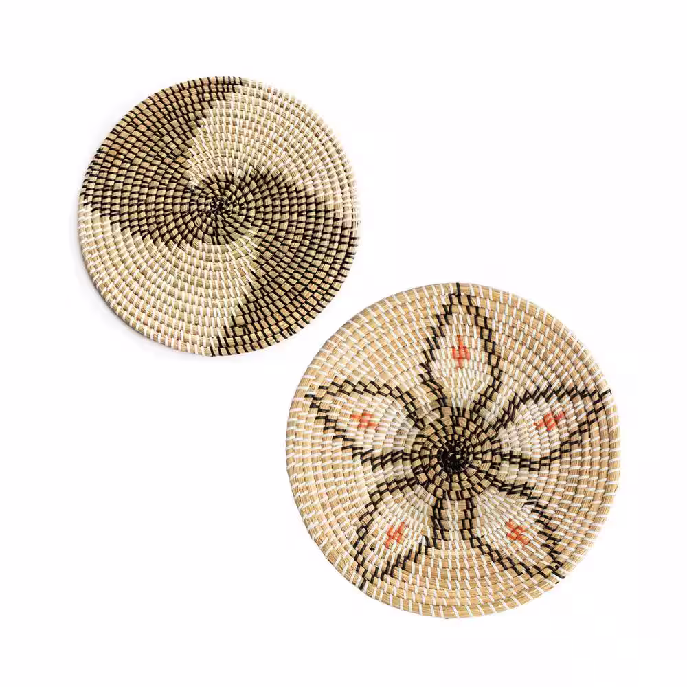 None Woven Wall Basket Decor and Rattan Wall Plate Decor Set (Set of 2)