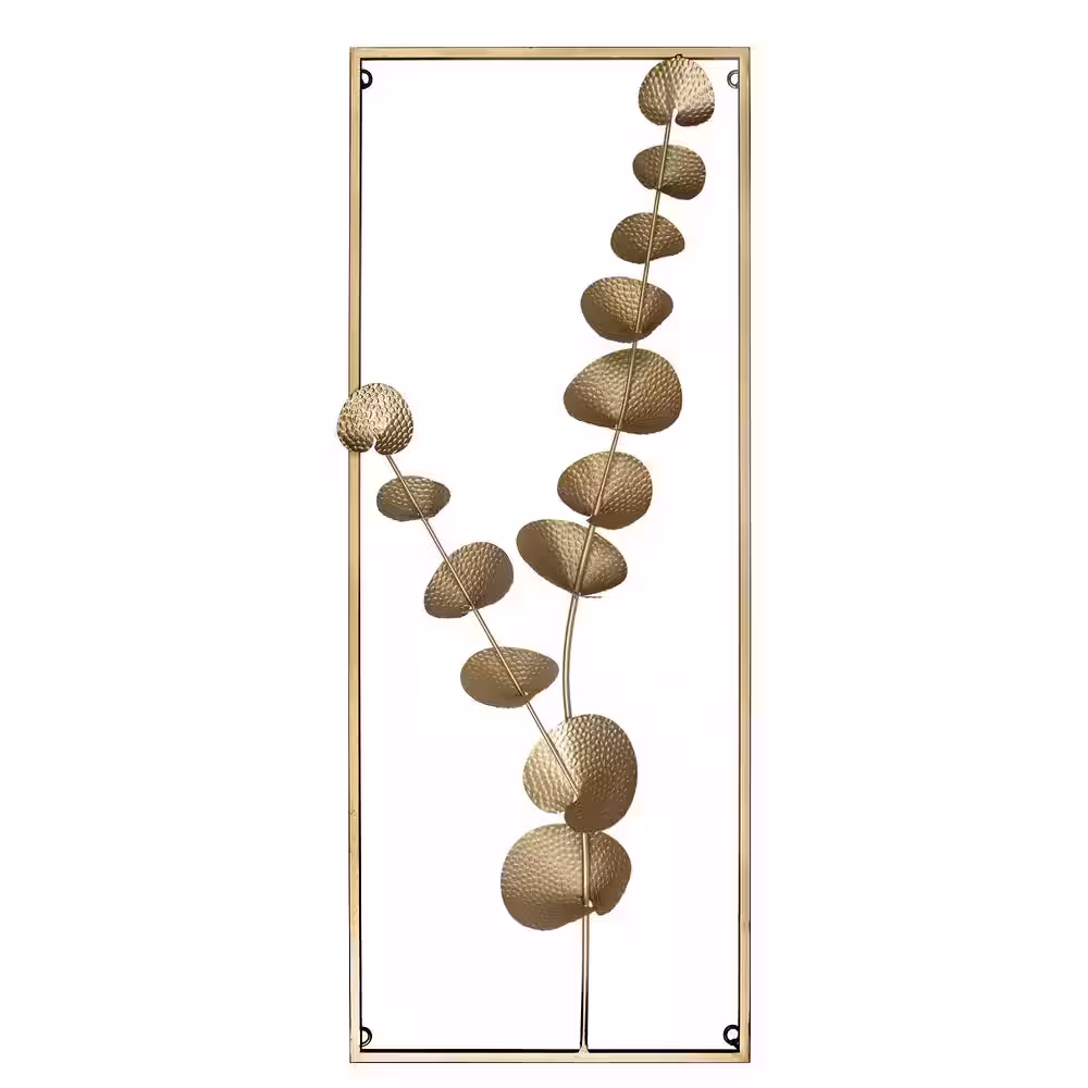 Stratton Home Decor Modern 35.50 in. x 13.78 in. Gold Metal Eucalyptus Panel Wall Decor