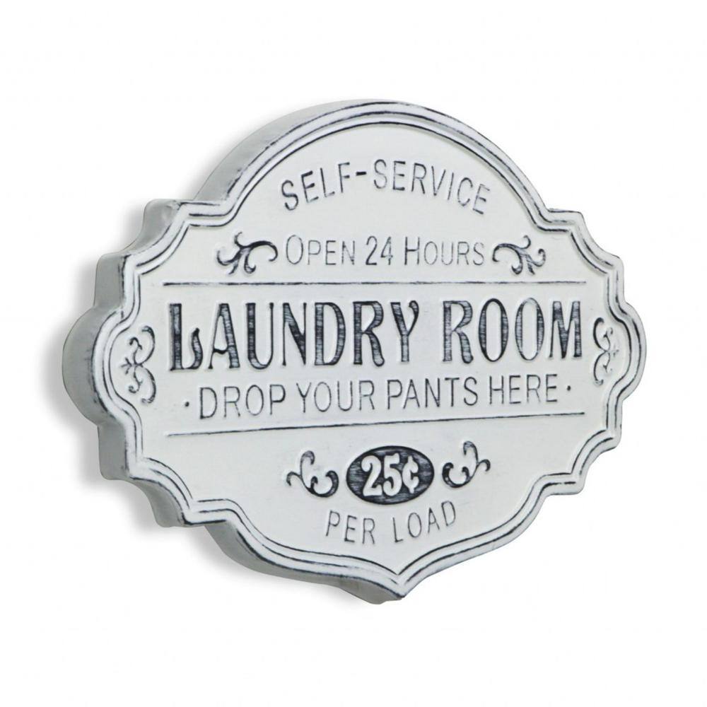 HomeRoots 14.75 in. White Laundry Room Metal Sign