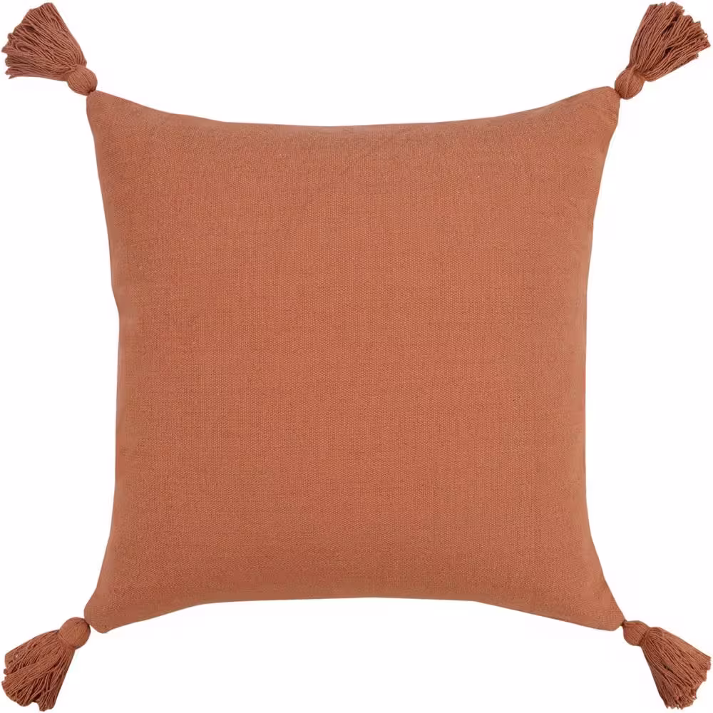 LR Home Solid Yam Orange 20 in. x 20 in. Cotton Everyday Decorative Throw Pillow with Tassels