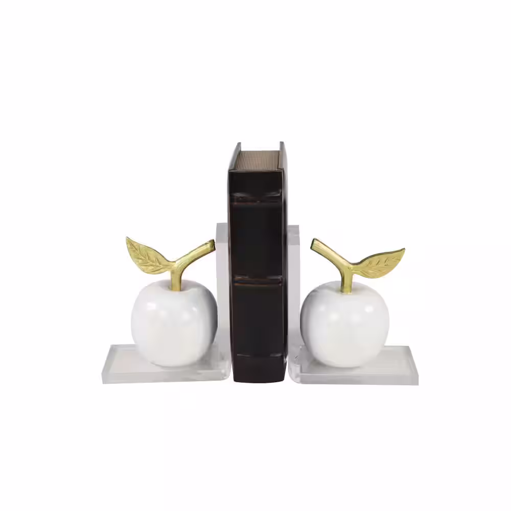 Litton Lane Metallic Gold and White Apple Bookends