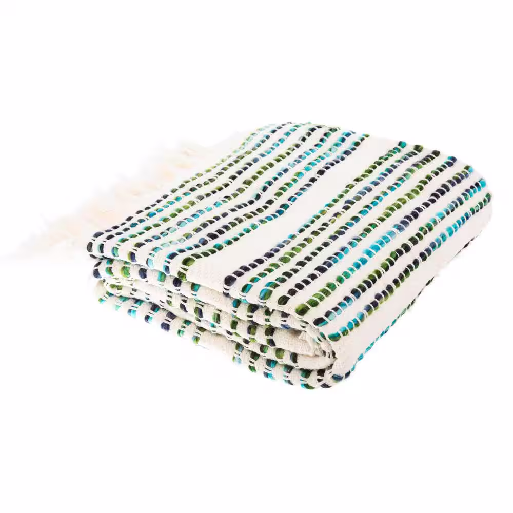 SAFAVIEH Landra 60 in. x 72 in. Blue/White Fringe Throw Blanket