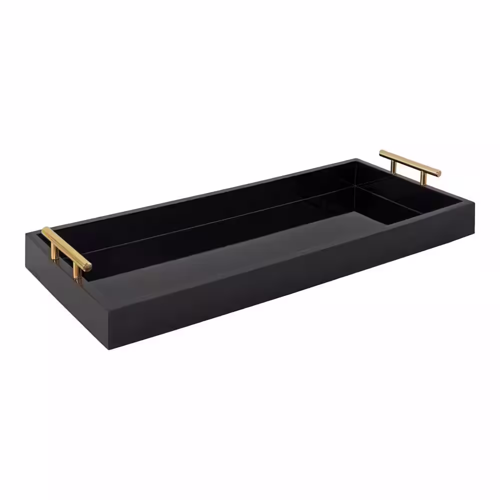 Kate and Laurel Lipton 24 in. x 10 in. Black Rectangle Decorative Tray