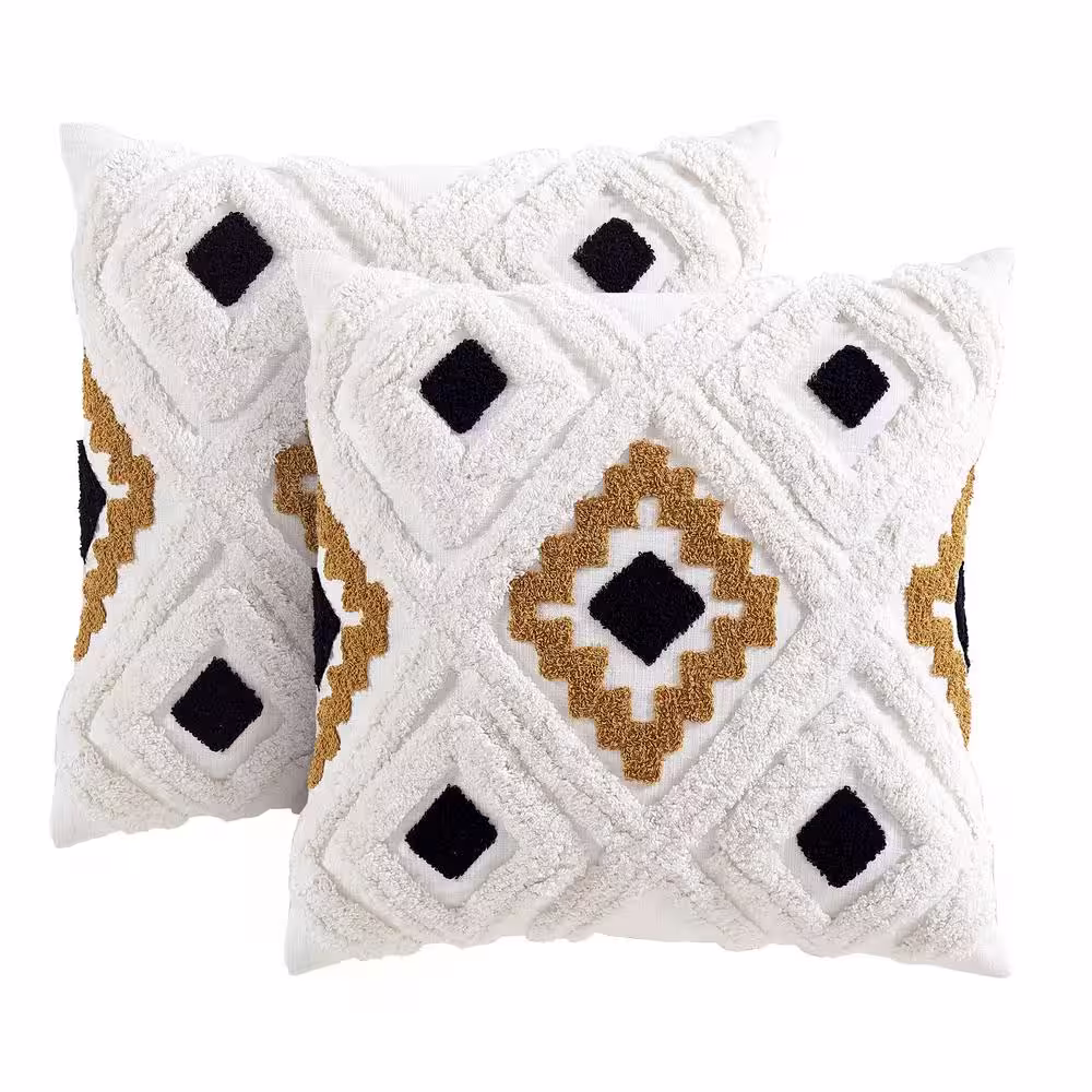 BRIELLE HOME Sterling Multi Color Textured Boho Geometric 20 in. L x 20 in. W Throw Pillow (Set of 2)