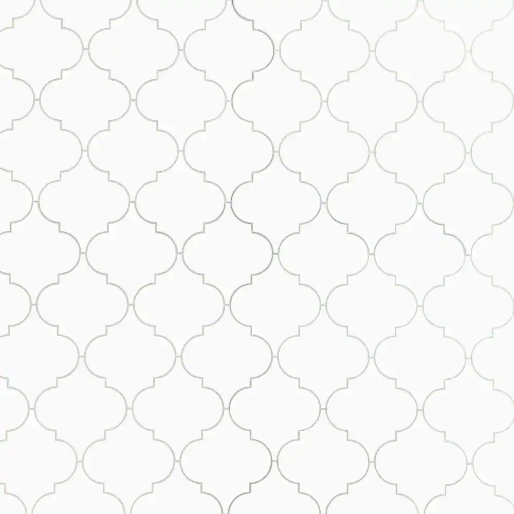 None Arabesque 11.8 in. x 11.8 in. White Peel and Stick Backsplash Stone Composite Wall Tile (10 Tiles, 9.67 sq. ft.)