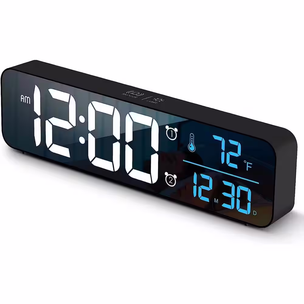 None Modern LED Large Display Wired Digital Alarm Clock in Black and Blue