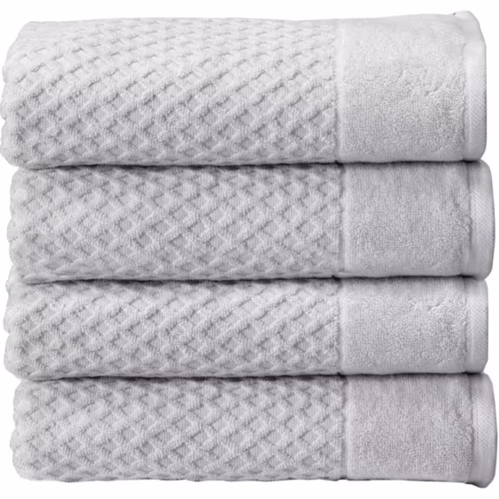 FRESHFOLDS Gray Solid 100% Cotton Textured Premium Bath Towel (Set of 4)