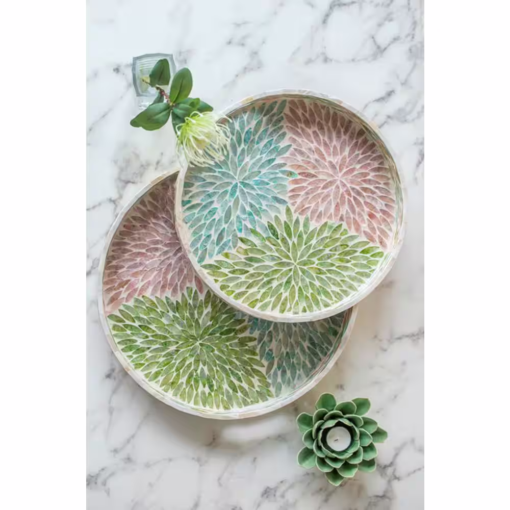 None 14 in.Dia. x 2 in. Multi Round Capiz Tray