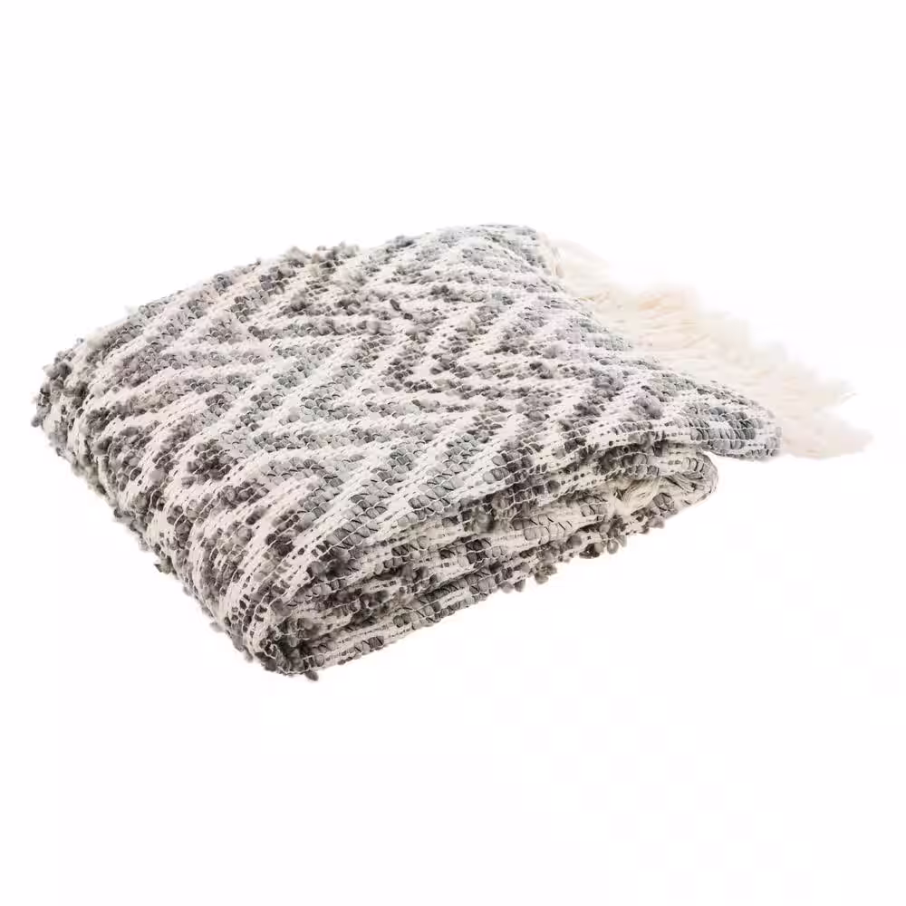 SAFAVIEH Santi 50 in. x 60 in. Gray/White Fringe Throw Blanket