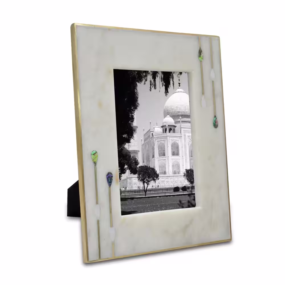 A & B Home 6 in. x 6 in. White and Brass Picture Frame