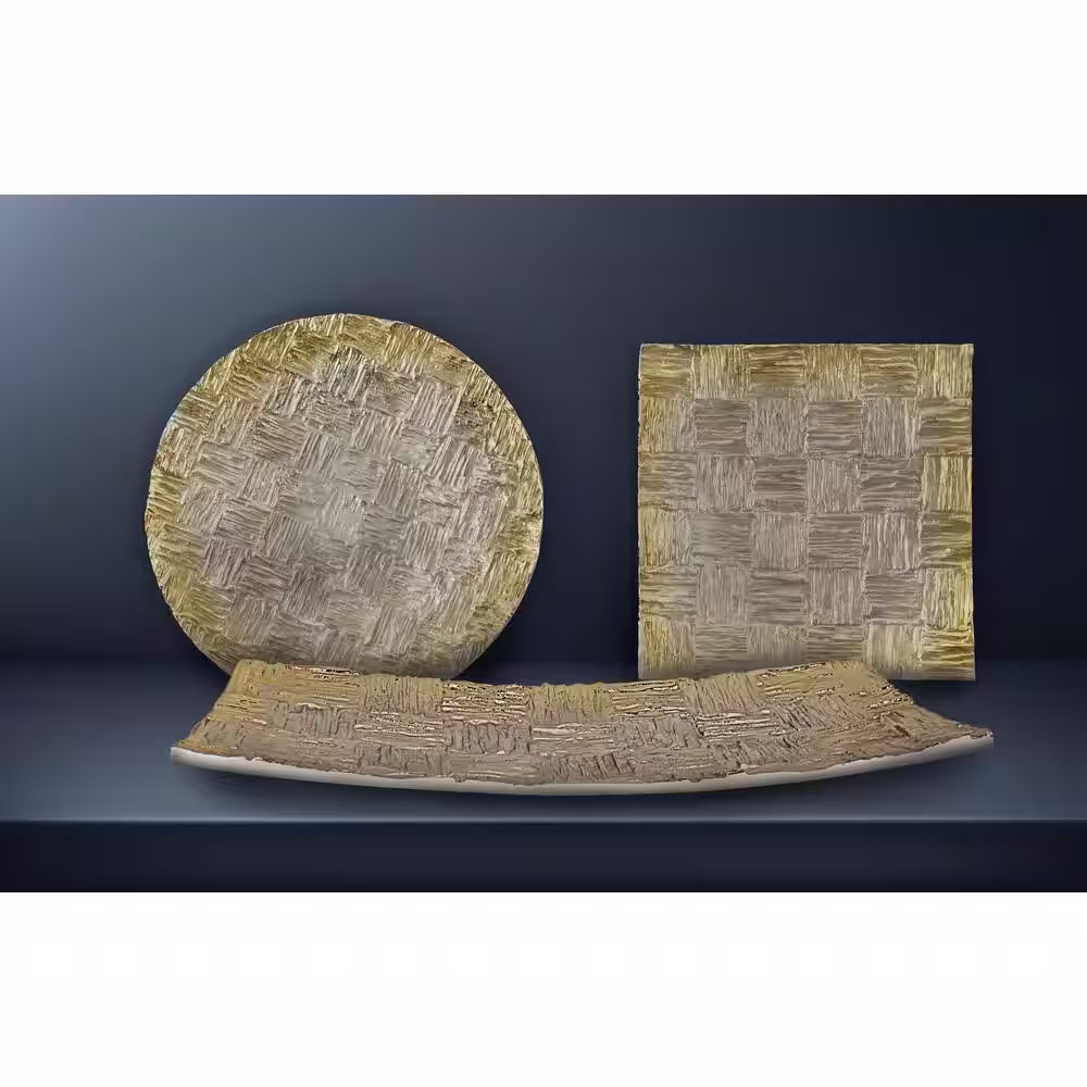 None 15-1/2" L x 7-1/2" W x 1-1/2" H, Gold Hand Made Cast Aluminum Rectangle Small Tray, Serving Platter For Home Decor.