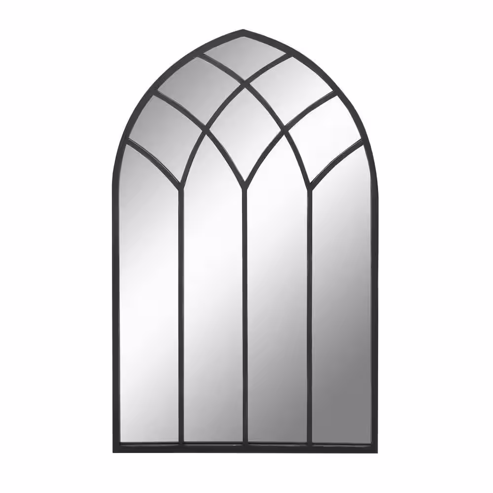 Litton Lane 48 in. x 30 in. Window Pane Inspired Arched Framed Black Wall Mirror with Arched Top