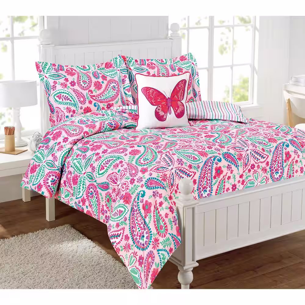 alex + bella Watercolor Flutter 4-Piece Multi-Color Full Comforter Set with a decorative pillow