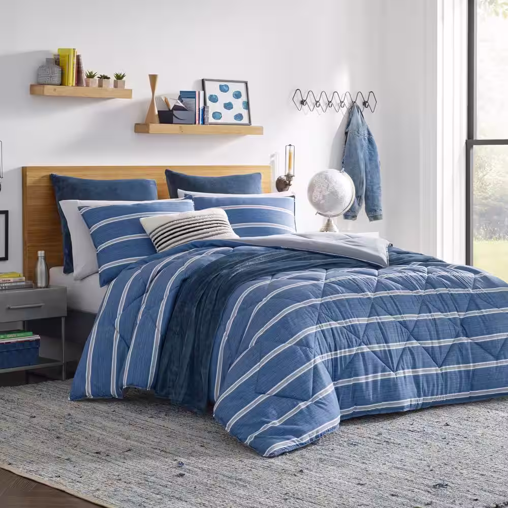 Nautica Keller 2-Piece Blue Striped Plush Microfiber Twin/Twin XL Comforter Set