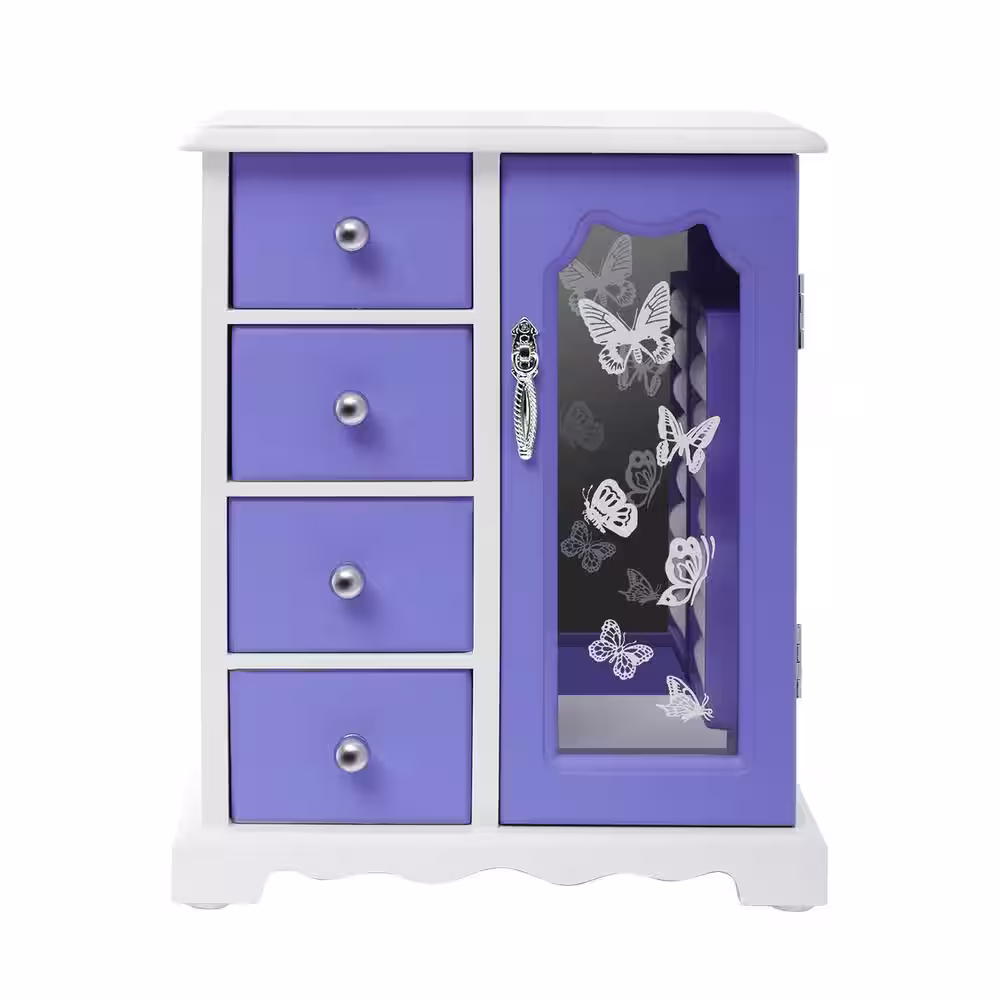 None Purple Jewelry Box Made of Solid Wood with 4 Drawers Organizer and Built-in Necklace Carousel and Large Mirror