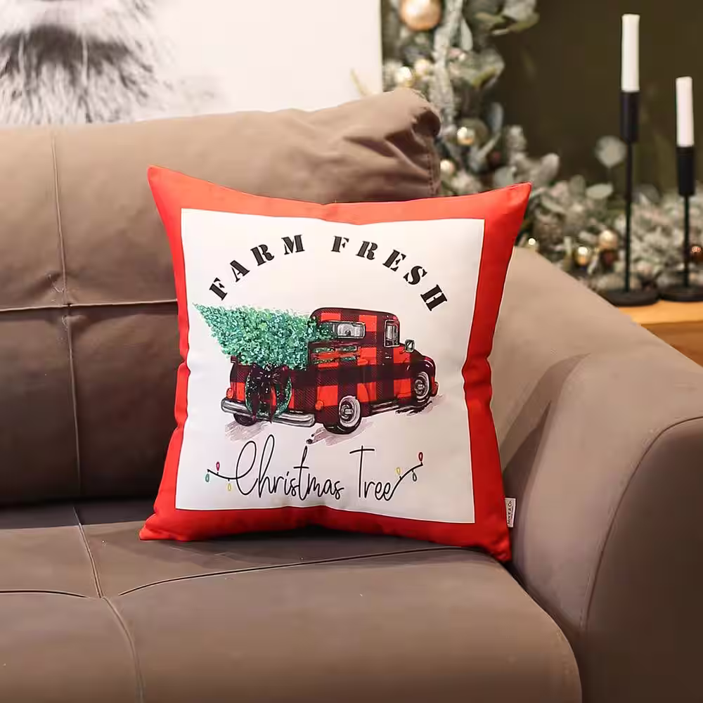 None Christmas Truck Decorative Single Throw Pillow 18 in. x 18 in. Red and White and Green Square for Couch, Bedding
