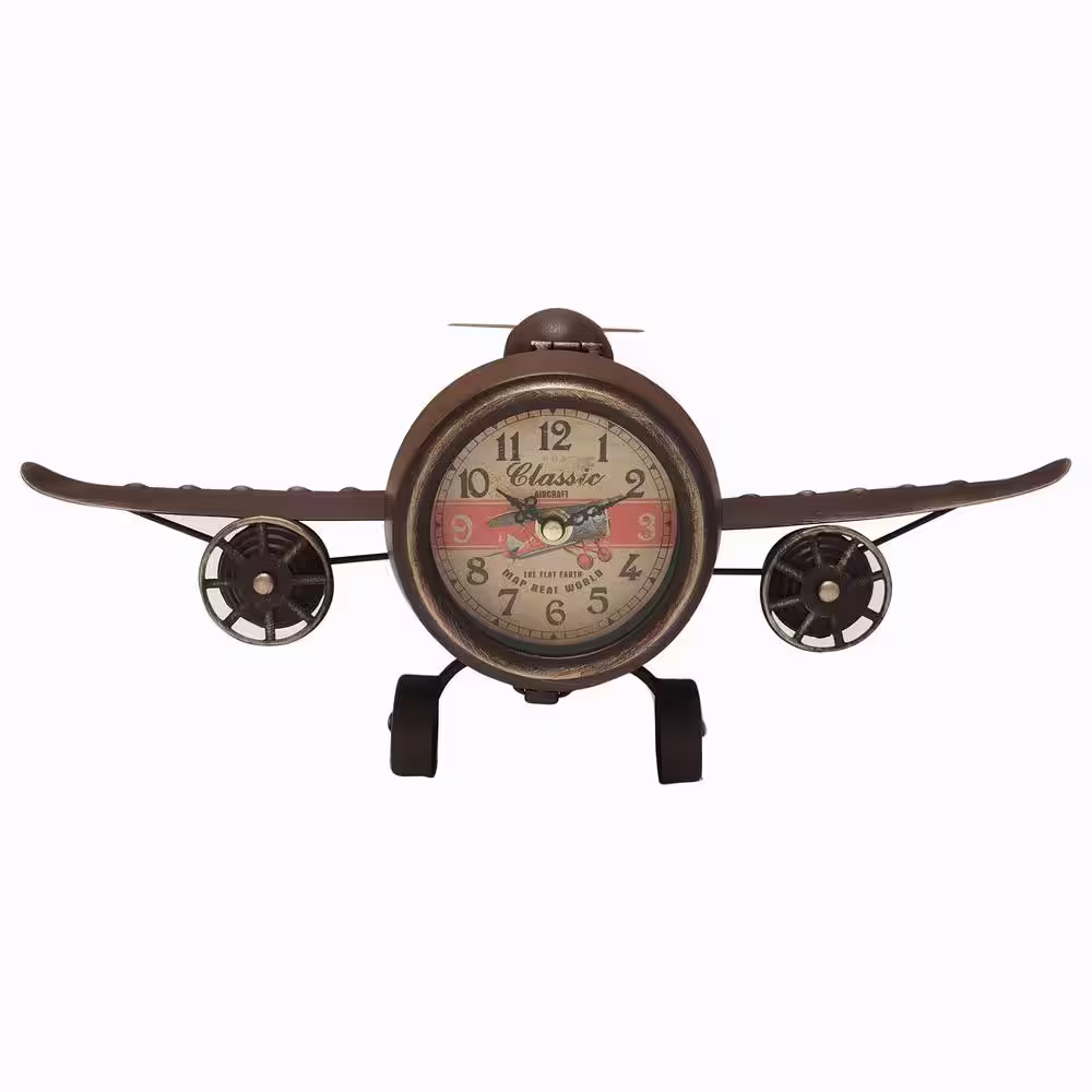 Peterson Artwares RUSTIC VINTAGE AIRPLANE Table Clock